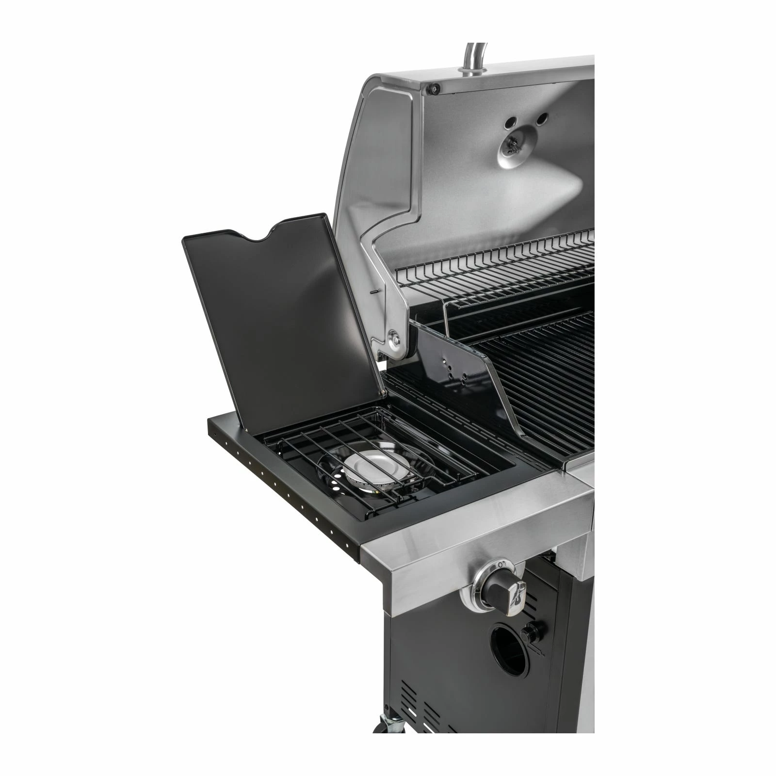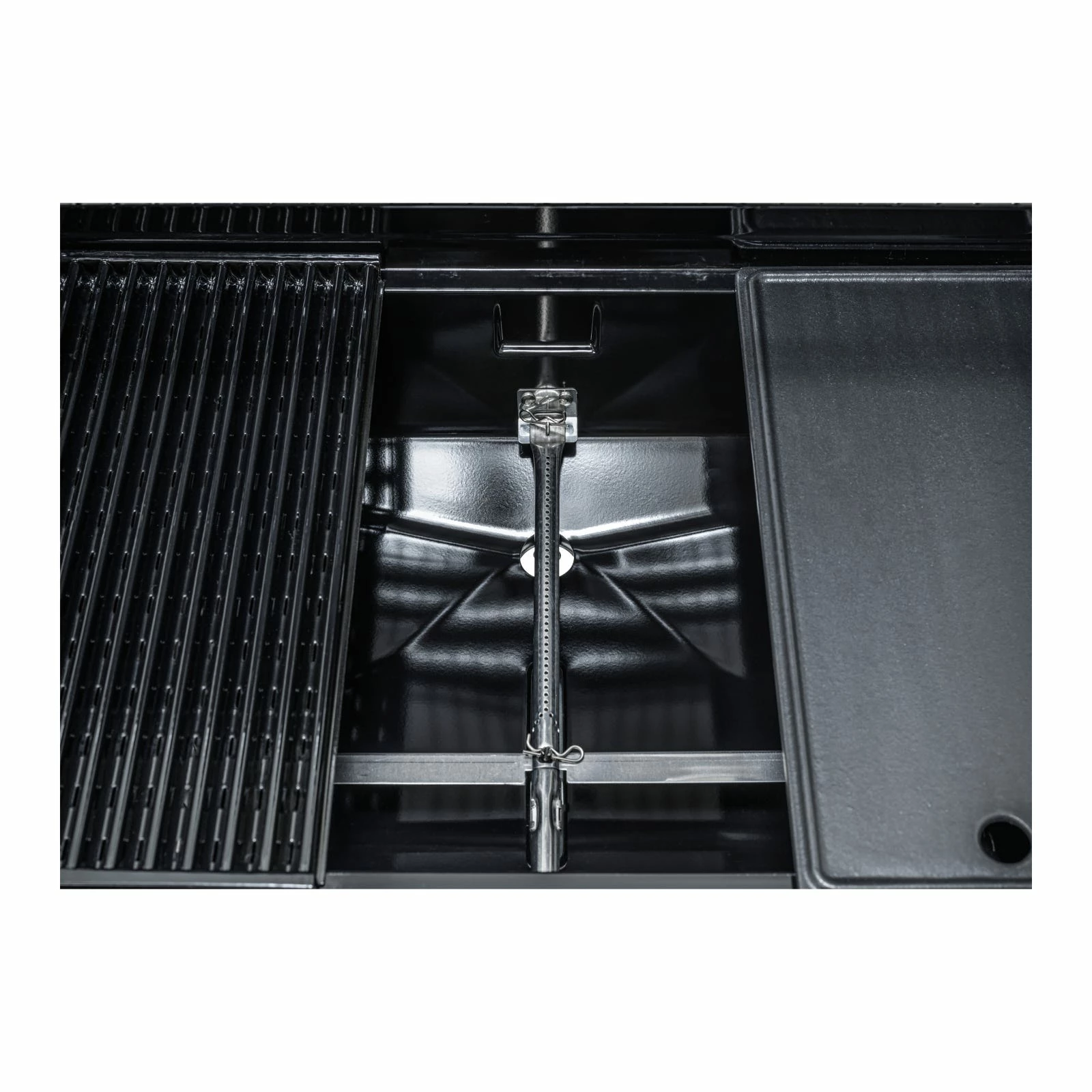 With an integrated griddle, this 3 burner grill offers a variety of ways to prepare meat, fish, vegetables, desserts and also breakfast. The comfort-grip handles offer a pleasant feel when handling.