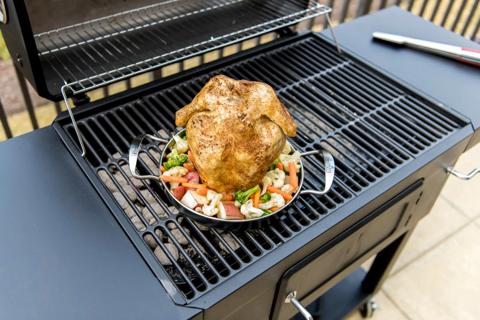 Thanks to this stainless steel vertical roaster, preparing beer can chicken is easier than ever. Pour beer or other liquids into the removable cup and marinate your chicken. Designed to ensure even cooking, as well as quick and easy cleaning. Why not try it out the next time you’re in the mood for delicious roast chicken.