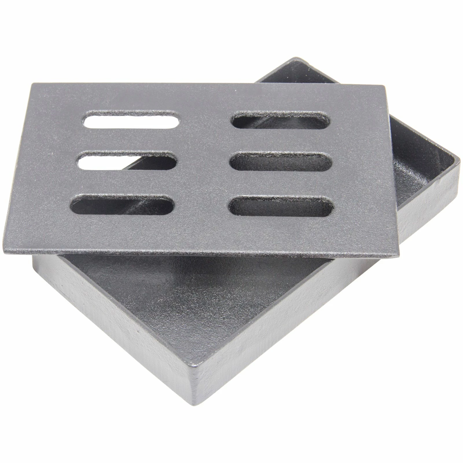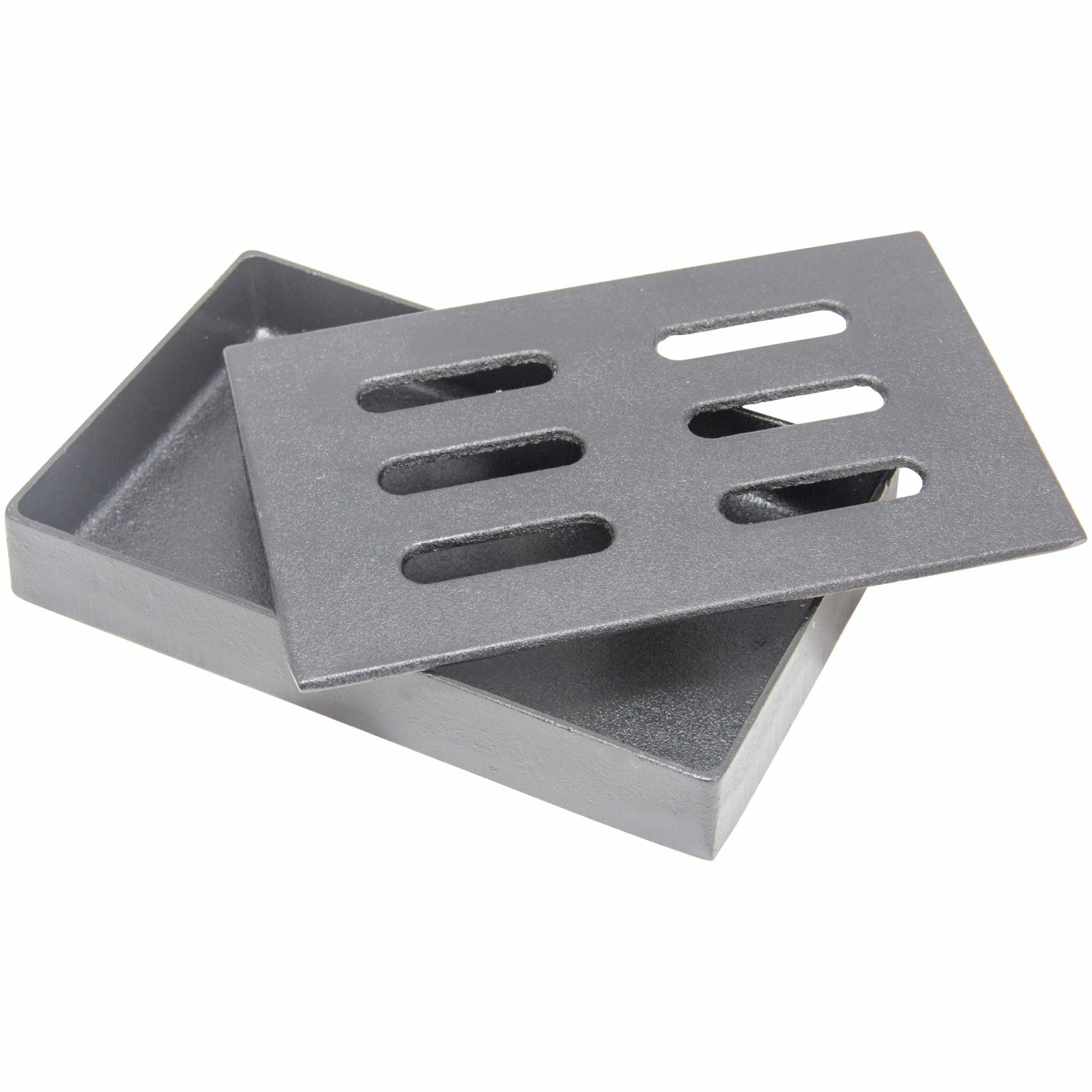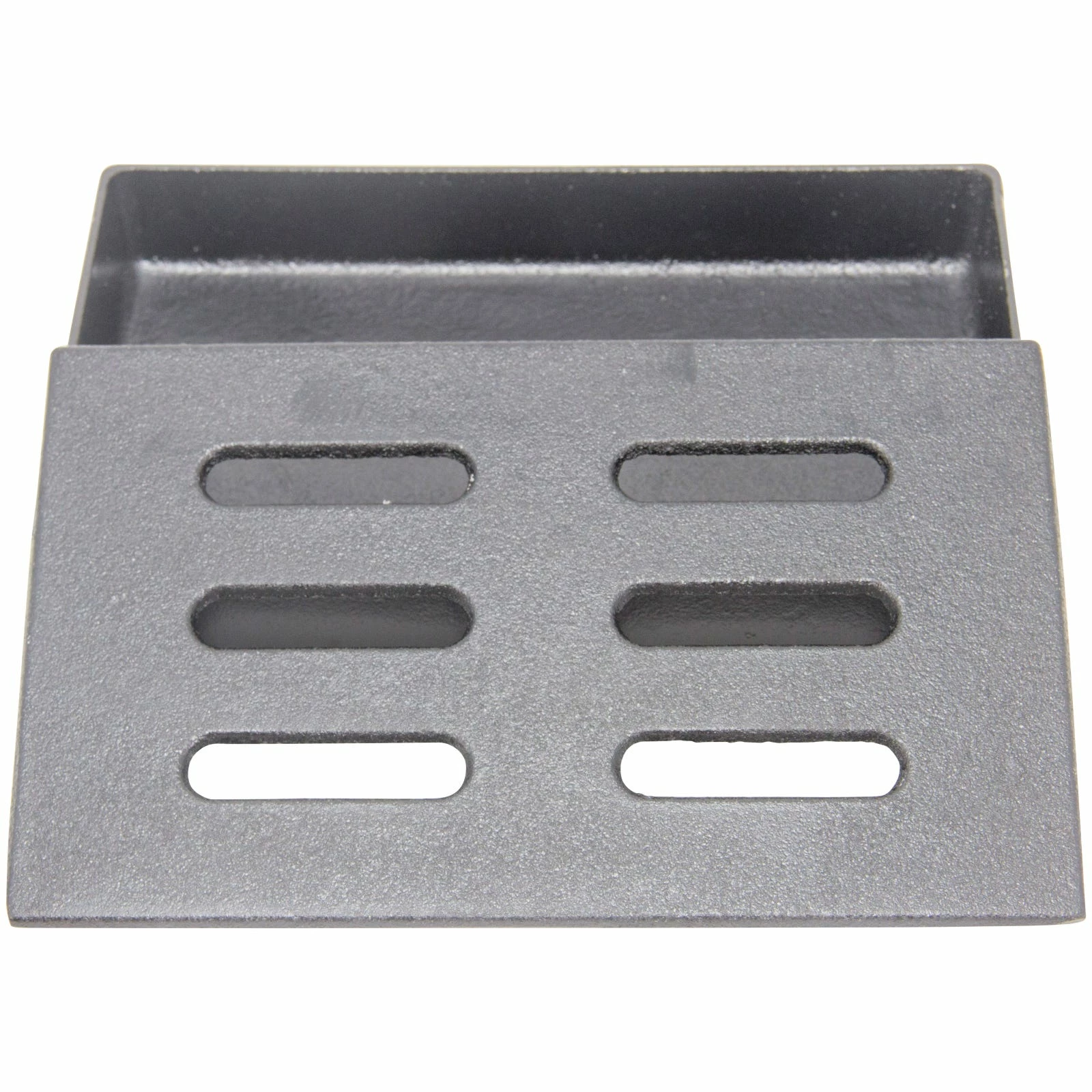 Use your grill for smoking with our cast iron smoker box. Simply place your favourite smoker chips inside – the lid prevents the wood from burning and automatically disperses the smoke. You can add juices, water or marinades to the smoker chips as desired, which will add additional refinement to the result. The cast-iron stores the heat perfectly while also withstanding hot temperatures on the grill.