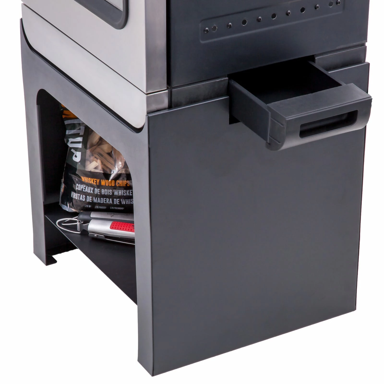 This base consists of an open shelf and serves as a base for your smoker, as well as a useful shelf at the same time. Raise your Digital Smoker to its rightful place of honour in the sun.