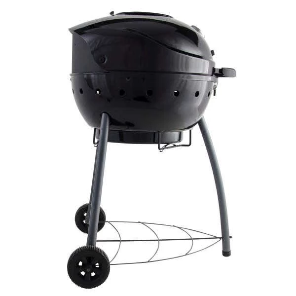 Engineered to give backyard chefs the ultimate control, the Kettleman charcoal grill does more with less charcoal. An exclusiv 360 degree air inlet provides even heat and heavy-duty steel legs with gunmetal finish provide a perfect stance. With the TRU-Infraredâ„¢ Technology that prevents flare-ups, cook more food with less fuel for extended cookouts and 50% juicier results.