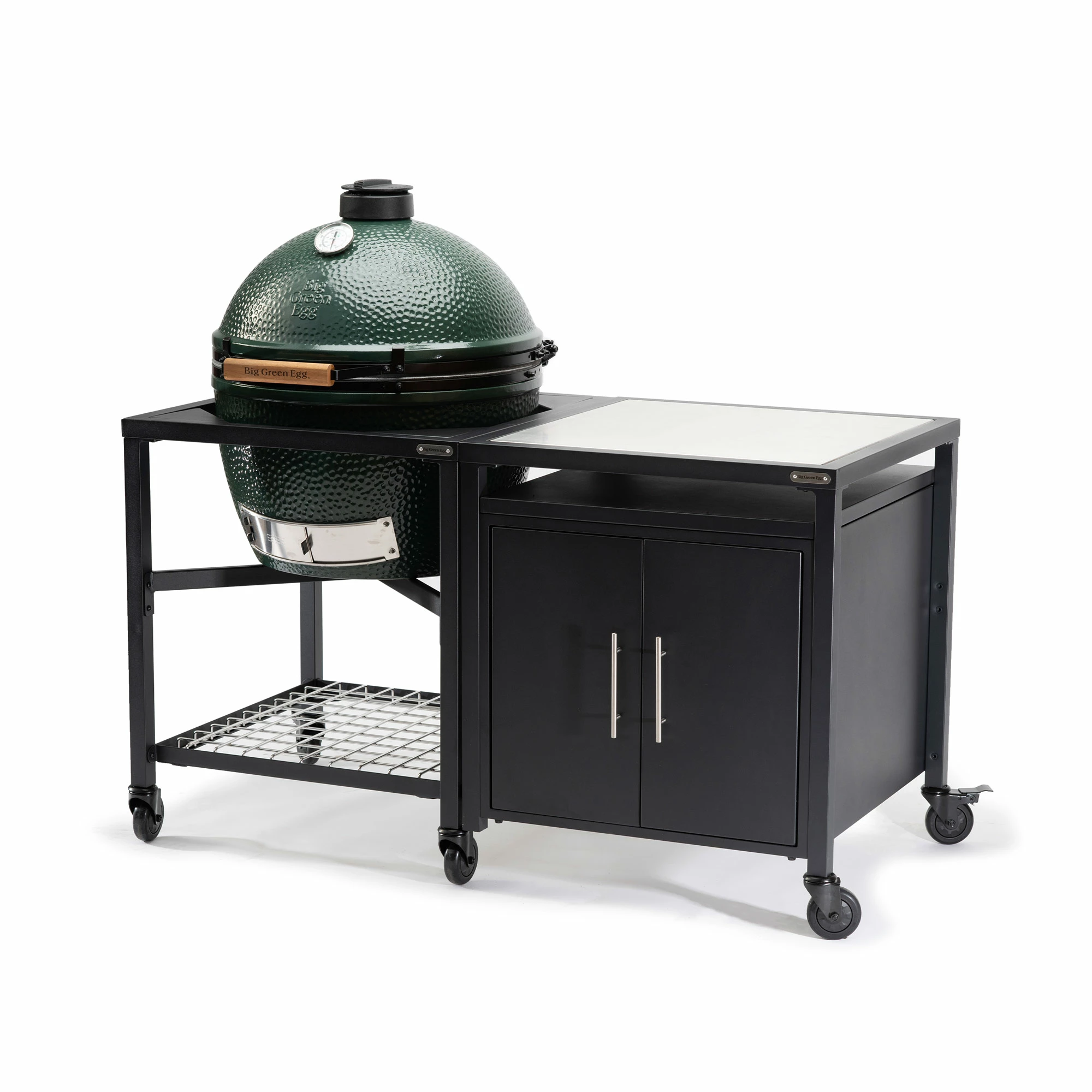 Our Modular Nest comes with tool hooks and a stainless steel wire grid for under-EGG storage. Here it is combined with an Expansion Cabinet complete with an easy-to-clean Stainless Steel Shelf — so you not only do you have space to prep but you can tuck your tools away neatly, safe in the knowledge that they’ll be protected from the elements.