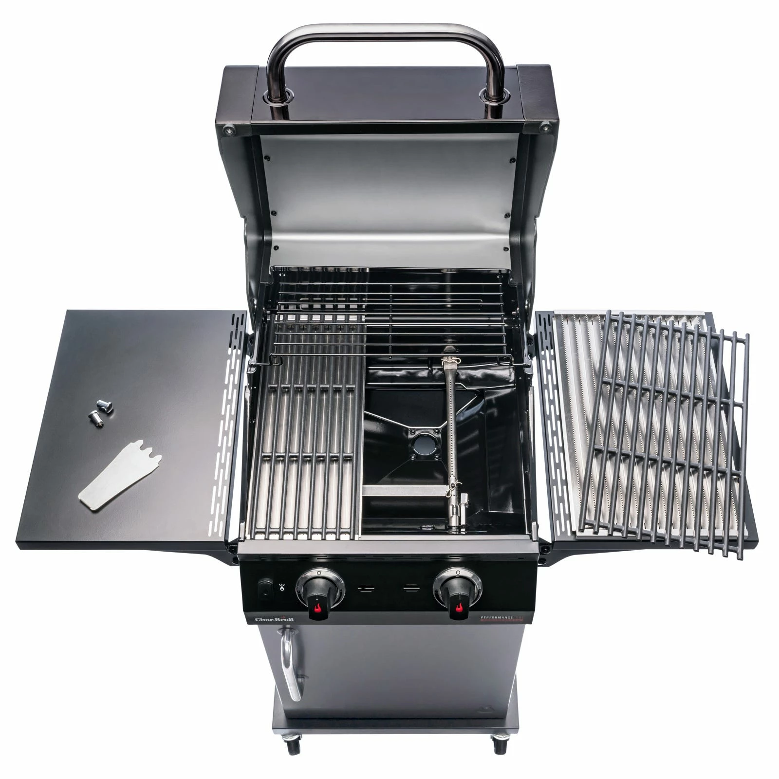 The fuel-efficient and stainless-steel burners quickly bring the grill up to temperature. Our innovative and unique TRU-Infraredâ„¢ Technology distributes heat evenly, making your food up to 50% juicier! SureFire ignition is started at the touch of a button, allowing each burner to be ignited individually and independently. In this way, Char-Broil helps budding professional grillers enjoy safe BBQ experiences. The Performance CORE is compactly designed and features storage space for a 5 kg gas bottle. It also boasts our handy Gear Trax tool hooks, which allow you to keep all your barbecue utensils to hand. Our grill is packaged in an environmentally friendly way without any polystyrene in FSC-certified cardboard packaging. The CORE version includes excellent basic features in a black design, which can easily be expanded and personalised to meet your needs with our MADE2MATCH system. Start with the CORE and in a few years, you could have built up to a whole outdoor kitchen!