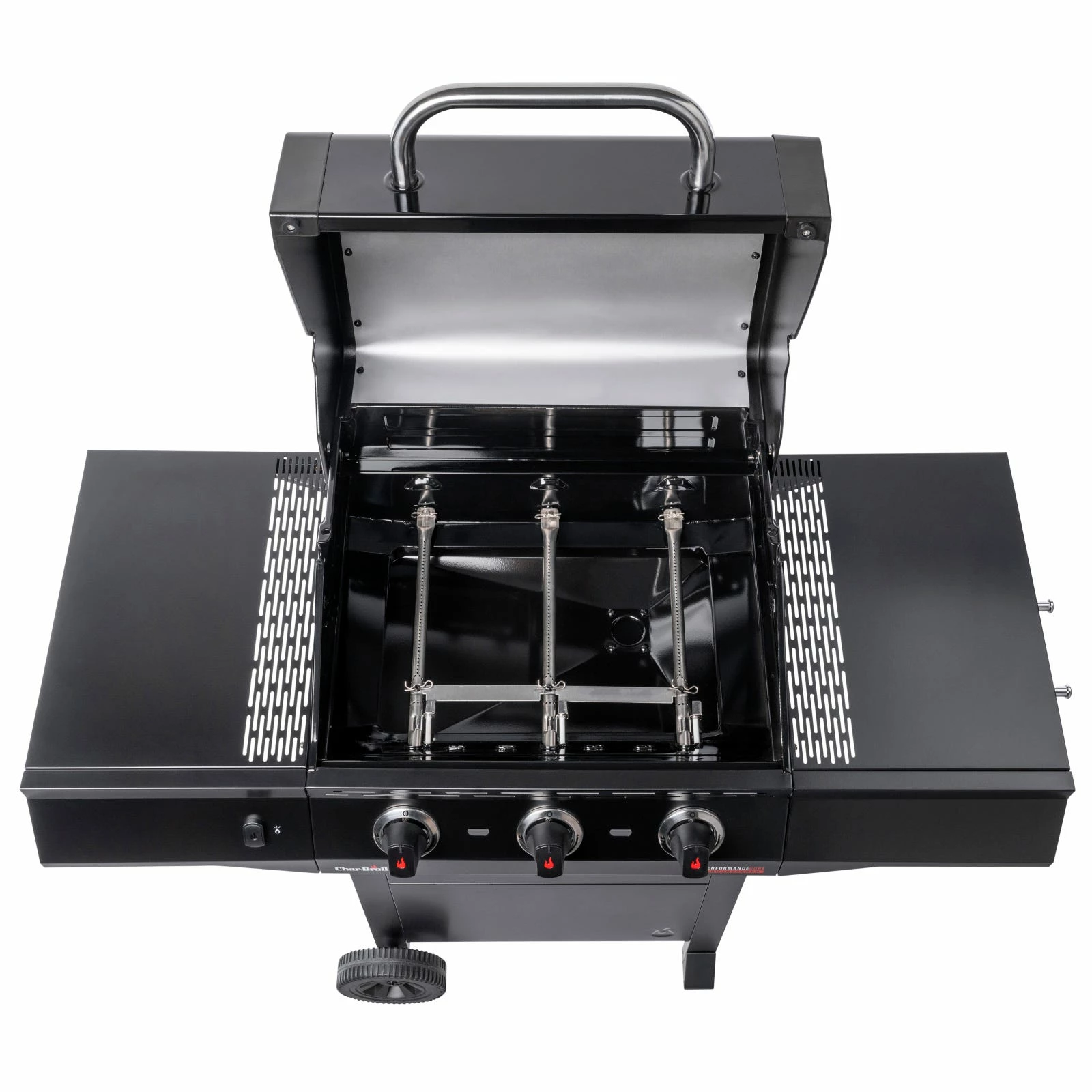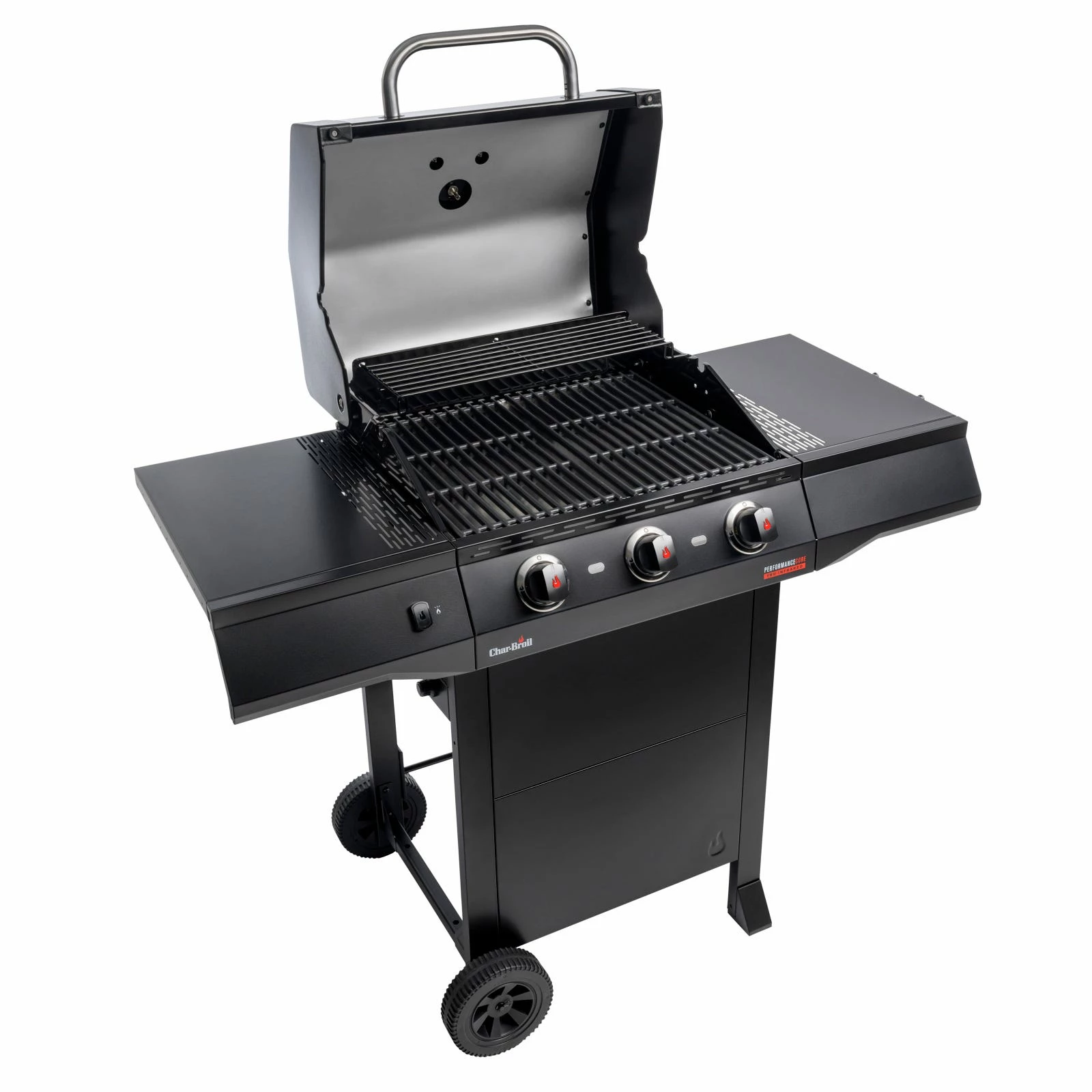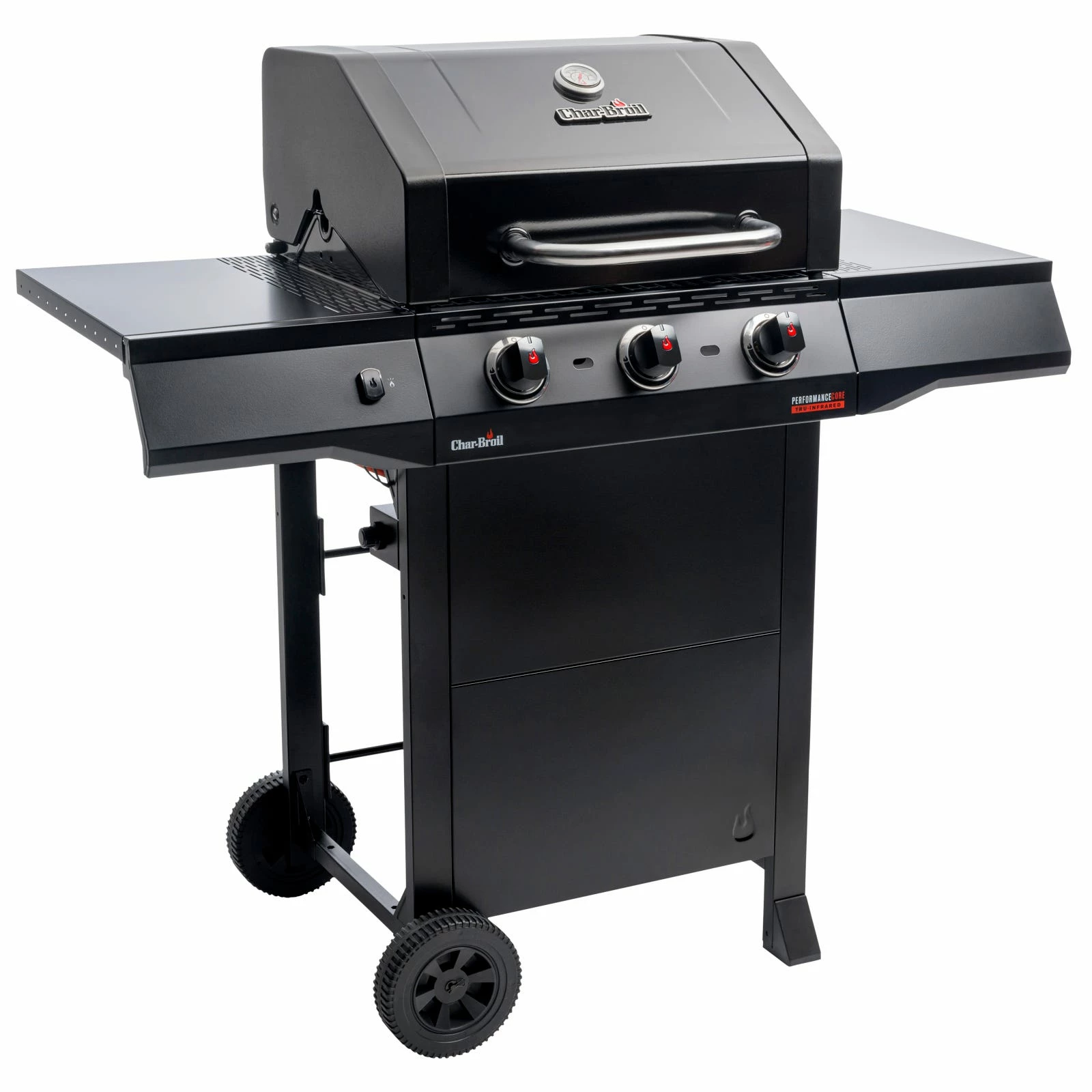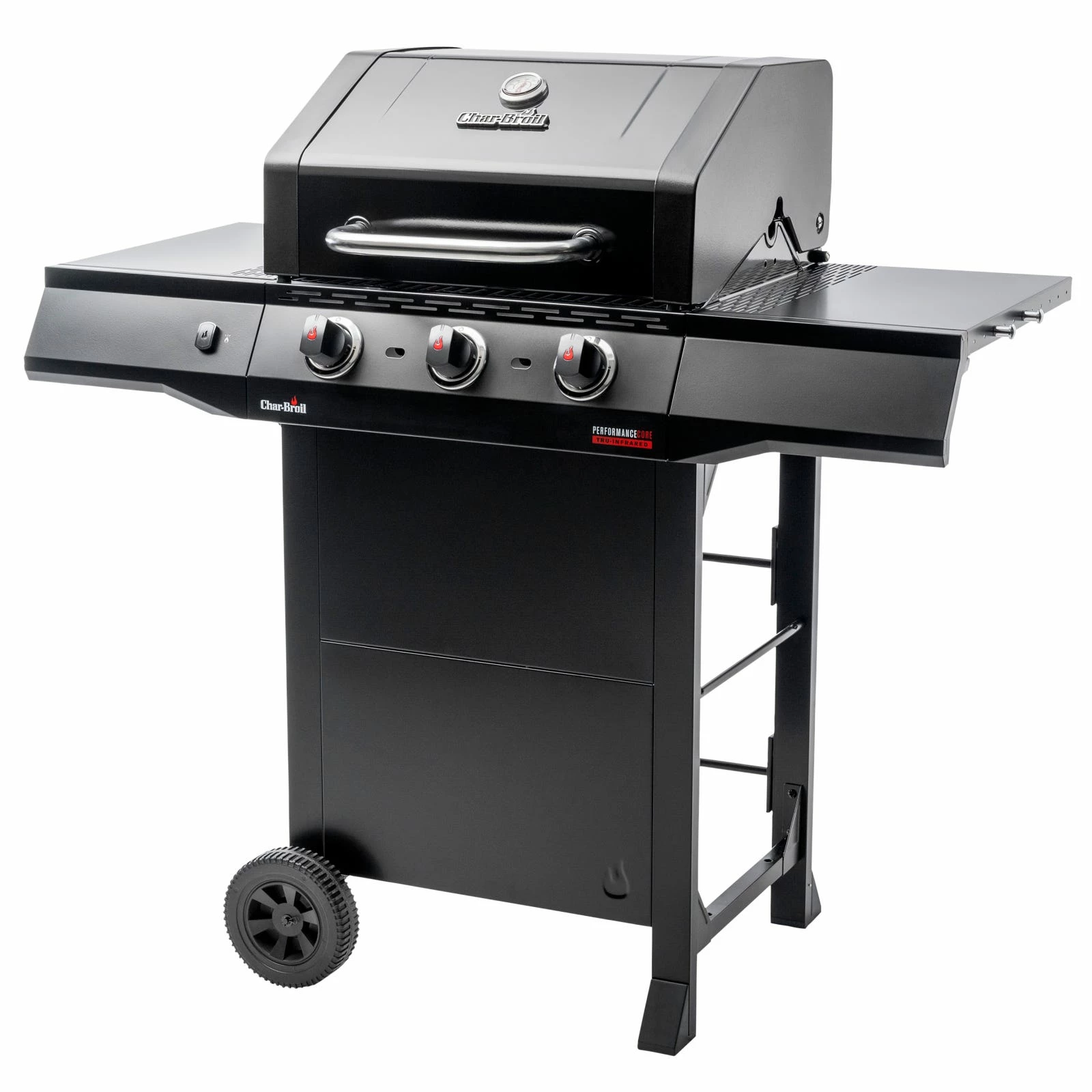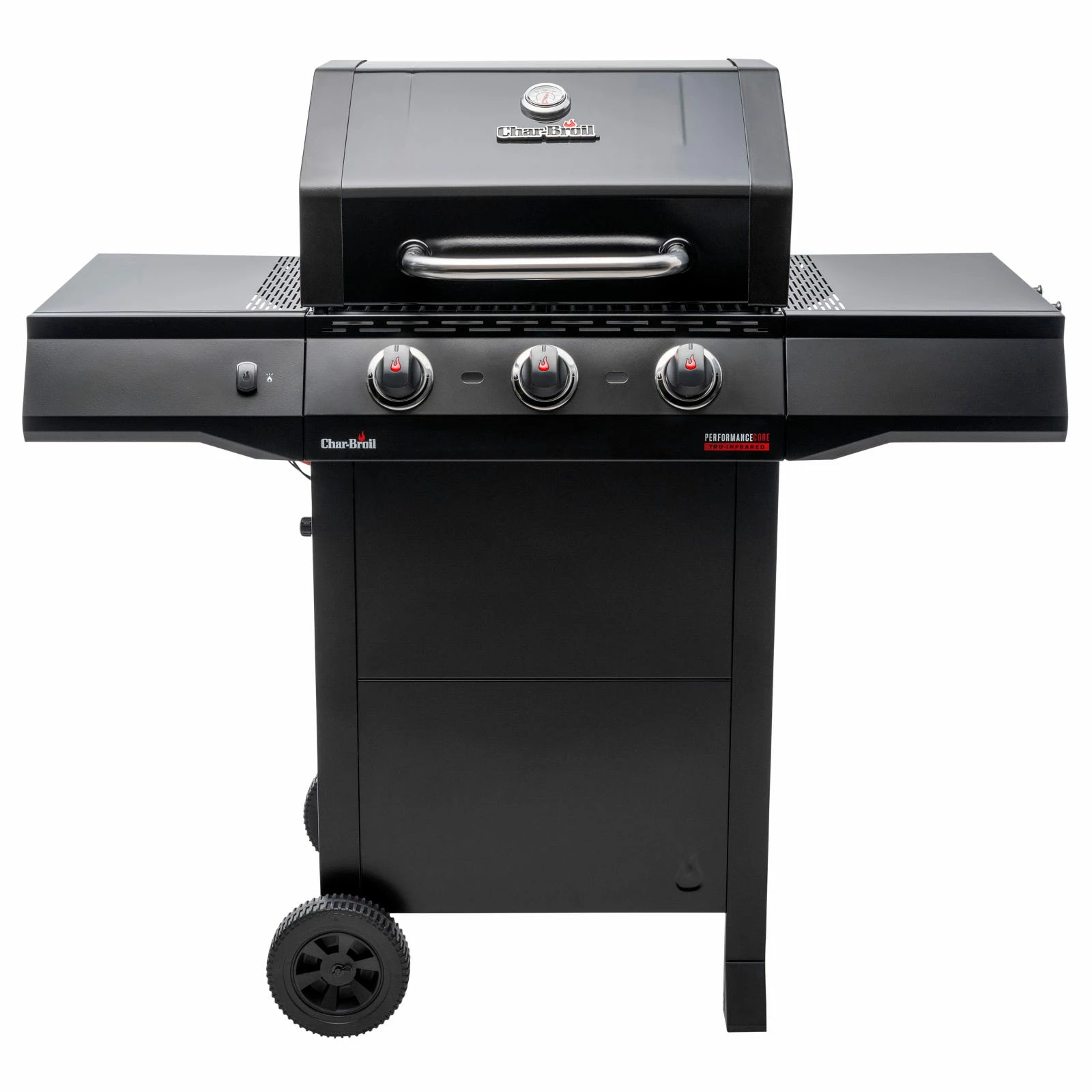 The fuel-efficient and stainless-steel burners quickly bring the grill up to temperature. Our innovative and unique TRU-Infraredâ„¢ Technology distributes heat evenly, making your food up to 50% juicier! SureFire ignition is started at the touch of a button, allowing each burner to be ignited individually and independently. In this way, Char-Broil helps budding professional grillers enjoy safe BBQ experiences. The Performance CORE is compactly designed and features storage space for a 5 kg gas bottle. It also boasts our handy Gear Trax tool hooks, which allow you to keep all your barbecue utensils to hand. Our grill is packaged in an environmentally friendly way without any polystyrene in FSC-certified cardboard packaging. The CORE version includes excellent basic features in a black design. Start with the CORE and in a few years, you could have built up to a whole outdoor kitchen!