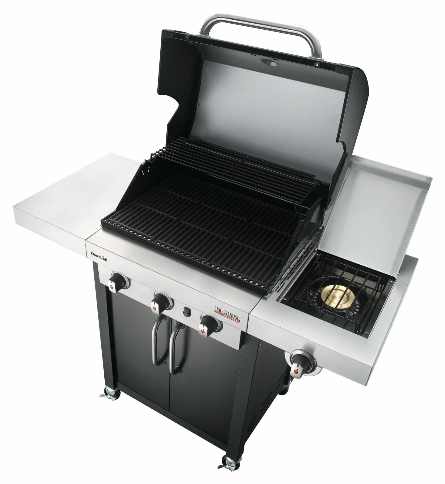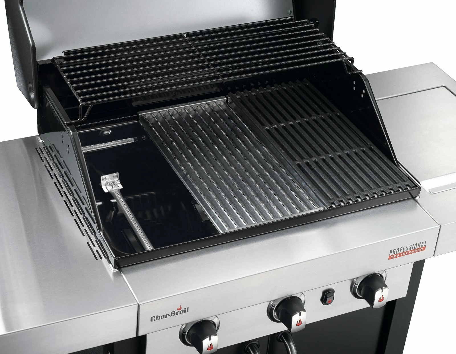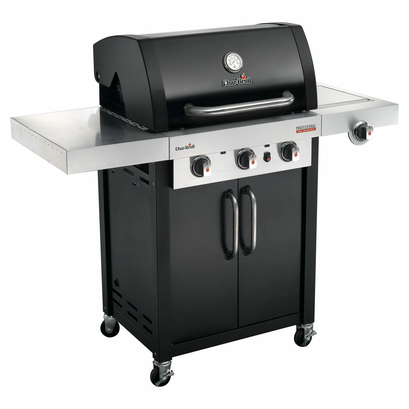 The Professional 3-burner grill is the perfect mid-sized for master grillers. Start it up with the push of a button. With infrared technology this grill heats up faster, hotter and more evenly for less grill flare ups and juicier food. Cast iron grates ensure excellent performance and perfect sear marks. Two large, steel doors hide the tank and allow additional storage.